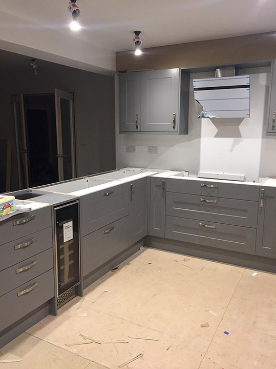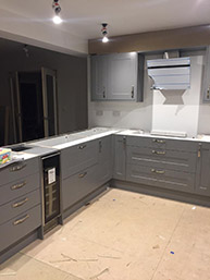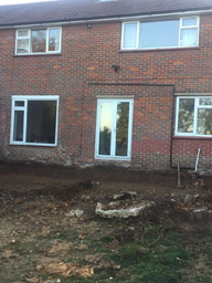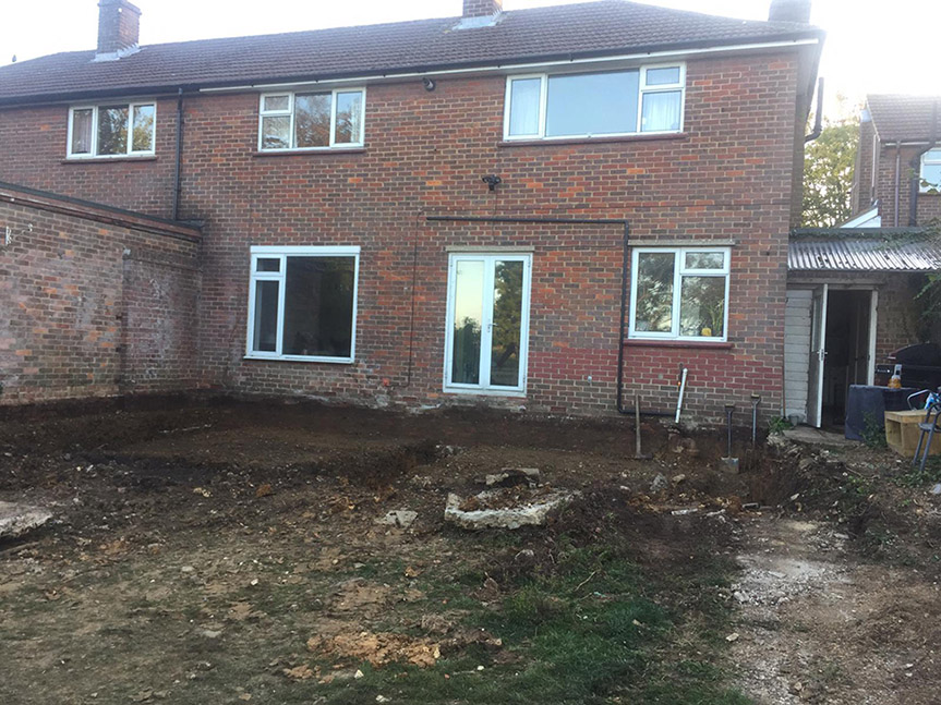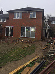 2 storey extension in Chesham. The client required dining room, study, en-suite bedroom and a new kitchen layout with underfloor heating and utility room, finished off with bi-folding doors.